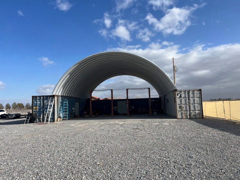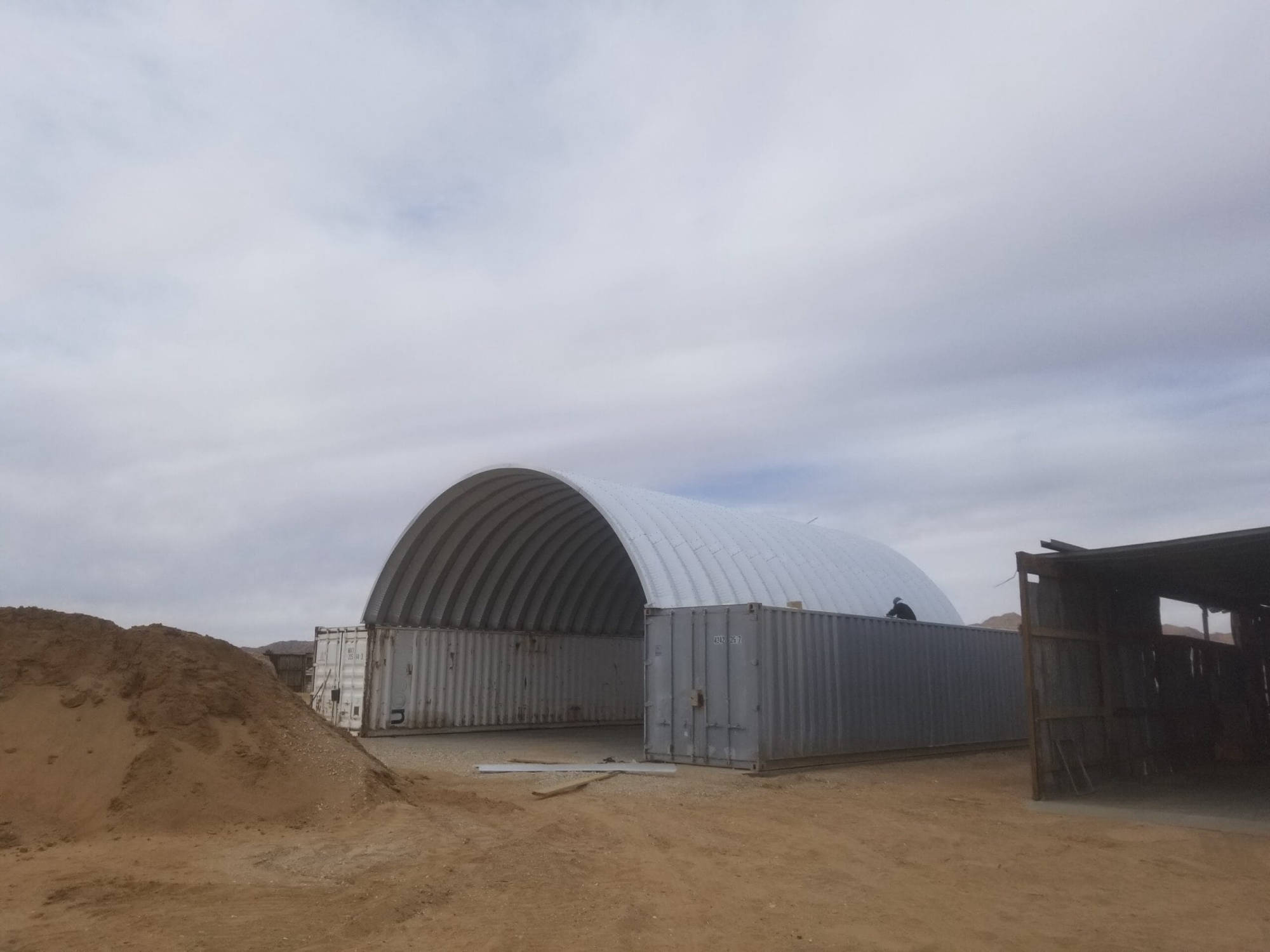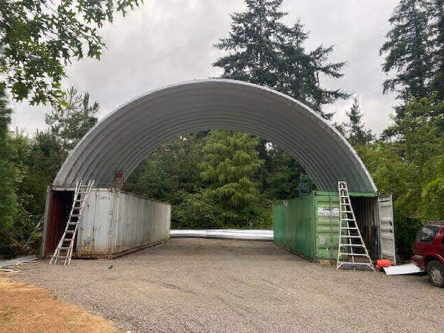 Create durable, weather protected space between containers without the cost of a traditional structure