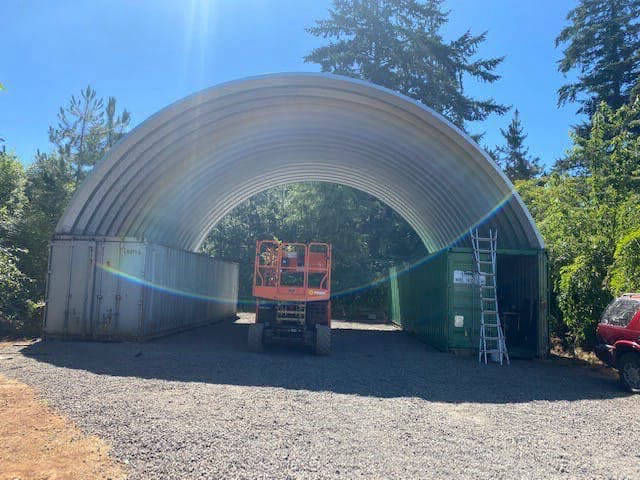 Create durable, weather protected space between containers without the cost of a traditional structure